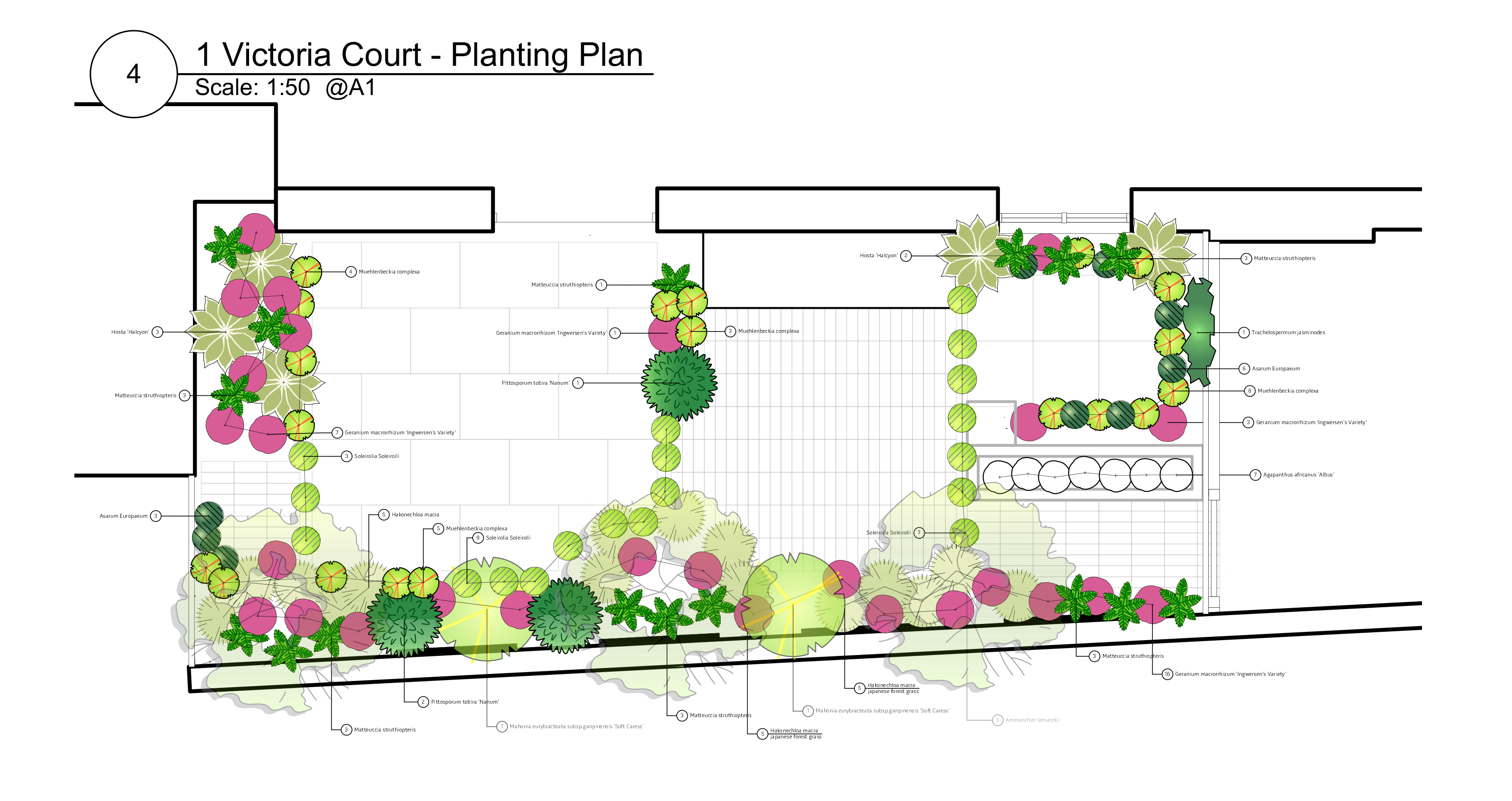- Planting Scheme maps the position & spacings of all new & existing plants in your garden