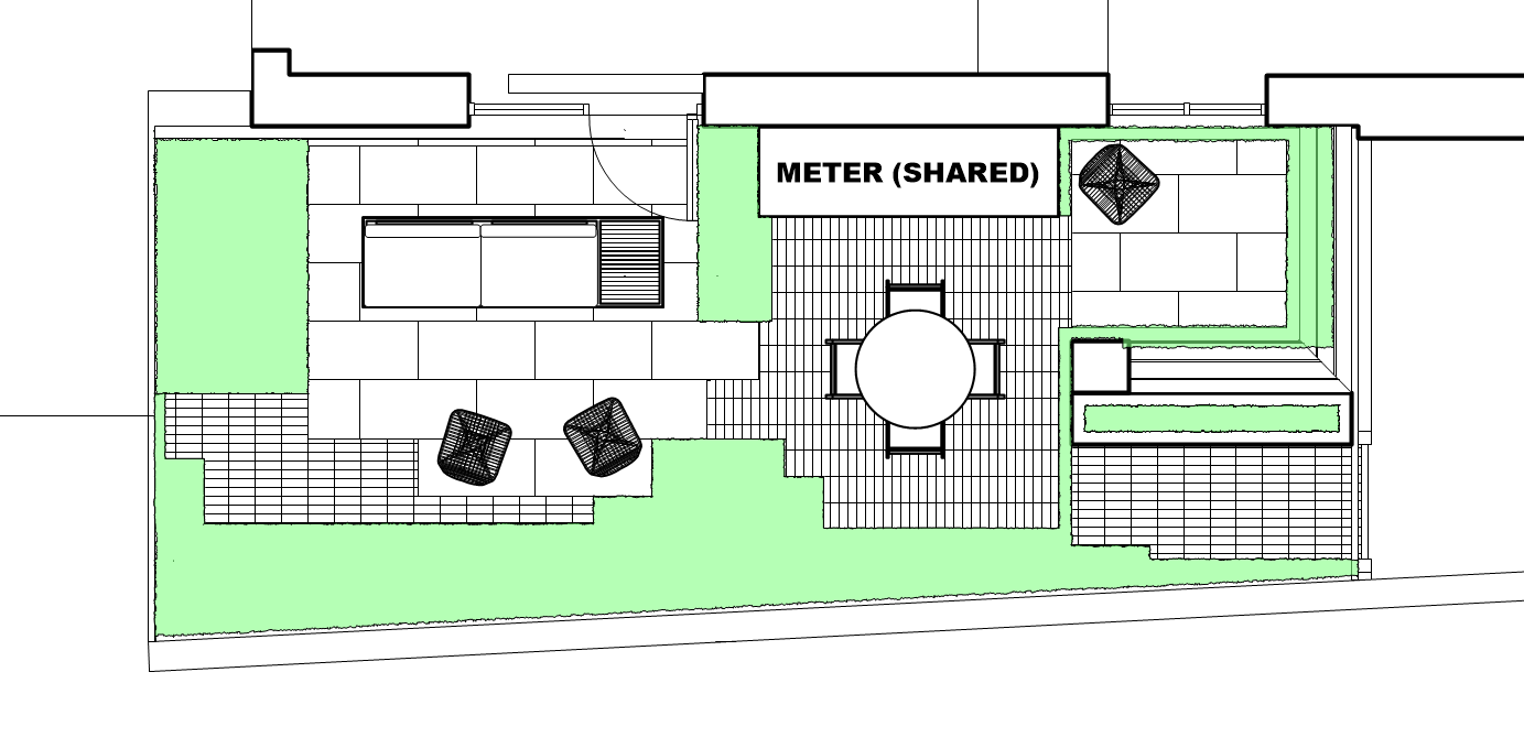 - Sketch Plan shows paving, planting borders and other features from above